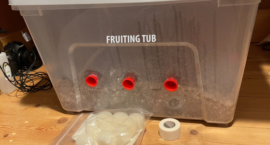 Over the next 5–7 days, you should see the surface of the substrate turn white as the mycelium spreads. Some condensation on the walls is normal. Once the tub looks fully colonized, you’re ready to fruit.